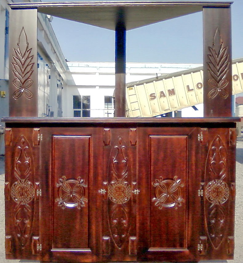 Домашний иконостас, материал липа, лиственница, габариты 920х1000х280, тон - орех, лак матовый, сентябрь-октябрь 2012